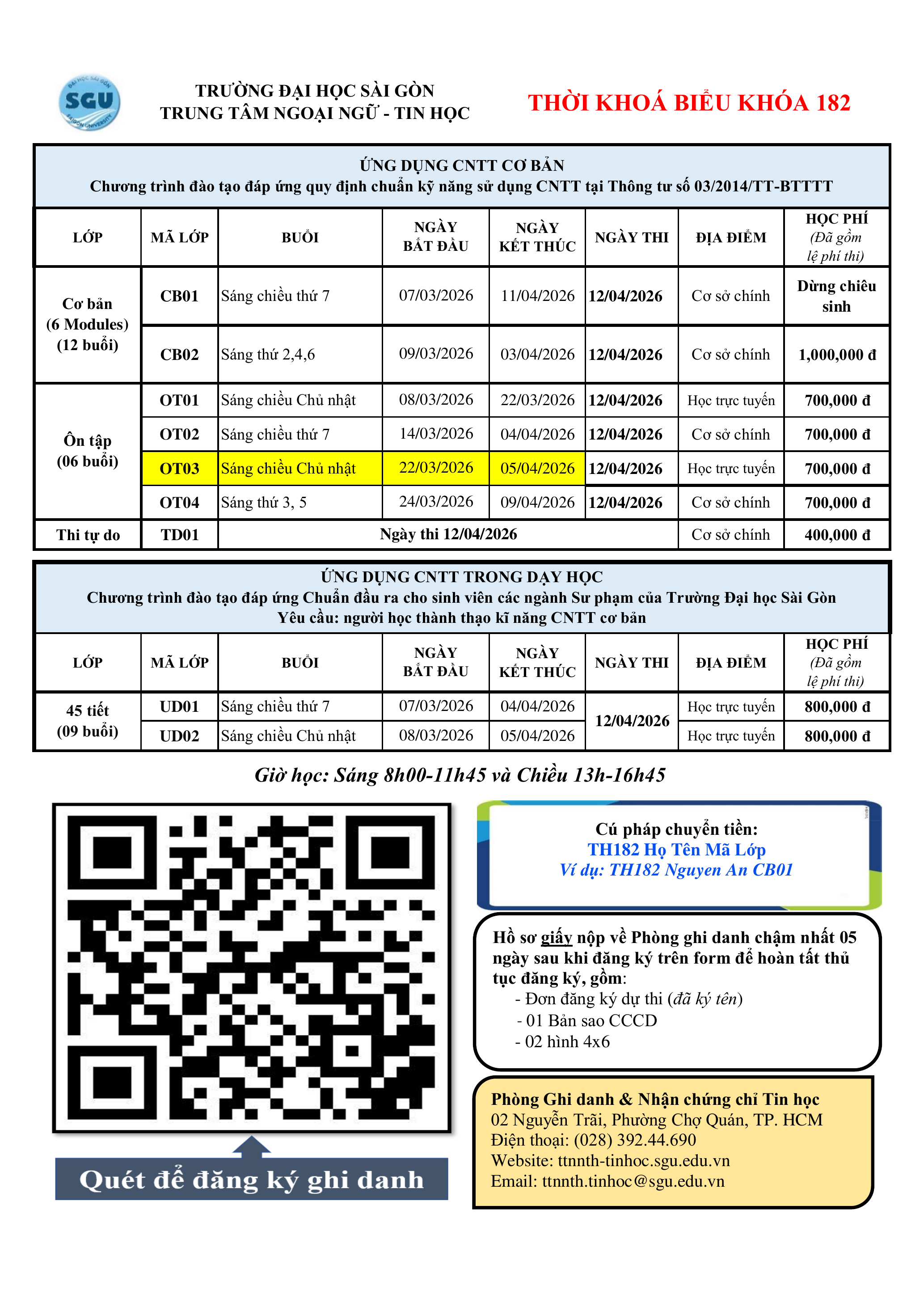 4. Thời hạn phúc khảo (chỉ áp dụng cho điểm thực hành Ứng dụng CNTT Cơ bản): Sau khi công bố điểm đến 13 giờ 30 ngày 05/02/2026 (sau thời gian này Trung tâm không giải quyết). Thí sinh phúc khảo điểm thi liên hệ phòng Ghi danh.