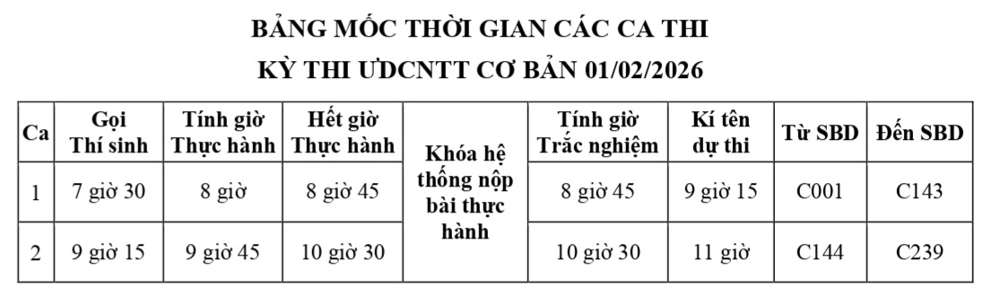 Thông tin phân bố phòng thi Ứng dụng CNTT Cơ bản 01/02/2026