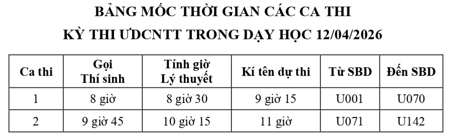 Thông tin phân bố phòng thi Ứng dụng CNTT trong dạy học 12/04/2026
